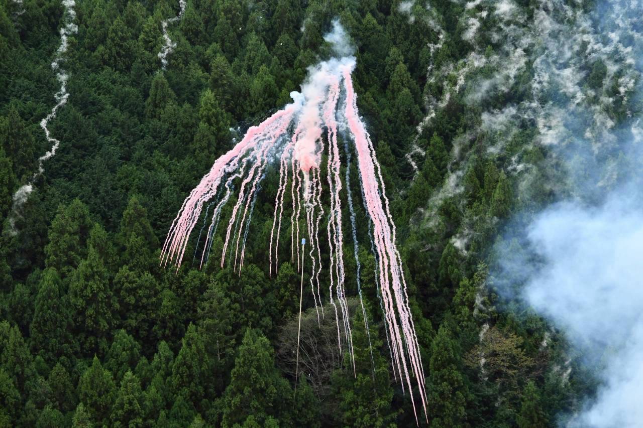 龍勢(りゅうせい)とは筒に黒色火薬を詰め、竹竿を結んだ花火のことです。