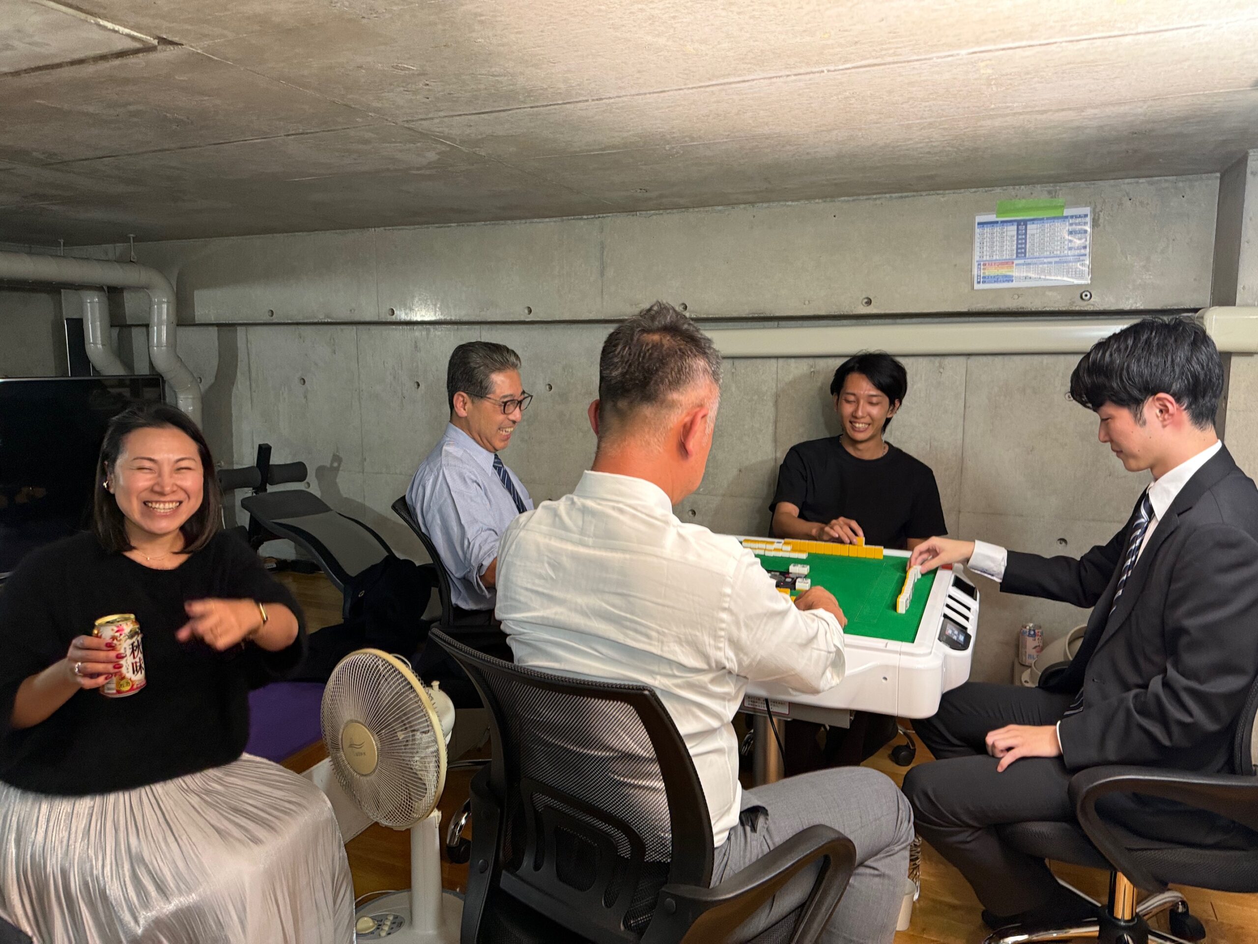 福岡からは役員が東京に駆けつけました。 卓を囲むのは、役職も部署も関係なく、ただ麻雀を愛する仲間たち。 フォロワー達成の喜びを胸に、点棒をやり取りしながら笑い合う姿は、 まさにHALZらしい「挑戦のあとの、もうひとつの時間」でした。