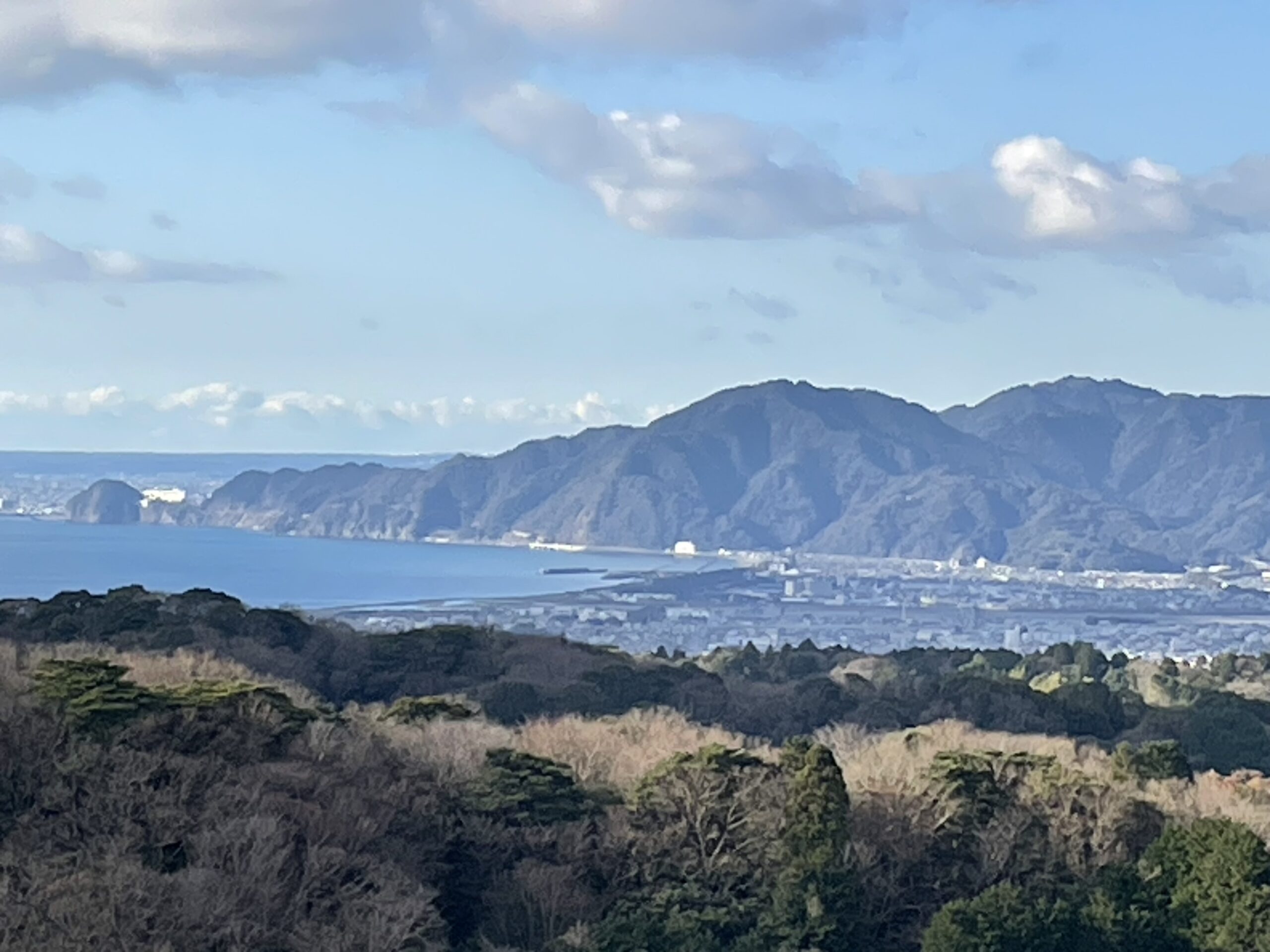 景色を堪能後、日本平ホテル近くの「東海自然歩道」ハイキングコースをウォーキング、そのまま舞台芸術公園へ抜け、日本平動物園駐車場を通過してゴール。