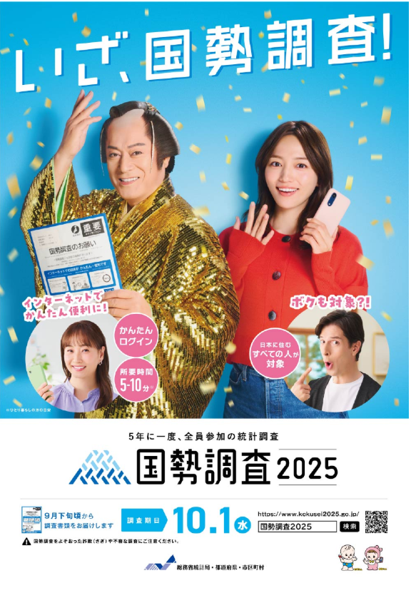 国勢調査とは日本に住むすべての人が対象の5年に一度行われる国の最も重要な統計調査となります。