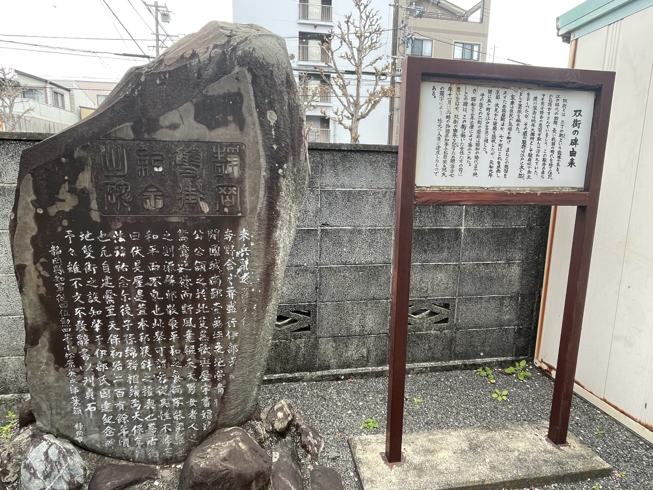 安倍川周辺、静岡県地震防災センター隣に「静岡双街記念碑」があります。