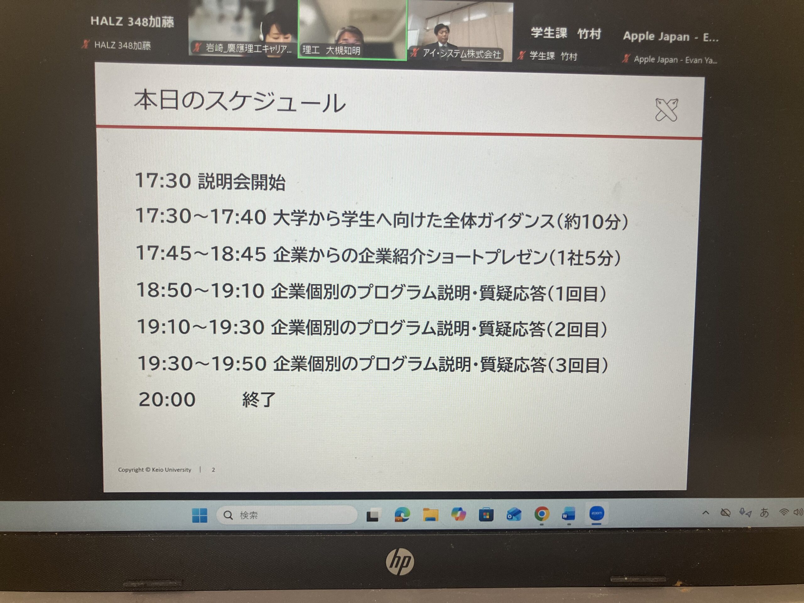 慶應義塾大学理工学部のオンラインインターンシップ説明会に参加しました。 主な対象は理工学部4年生及び修士課程・博士課程の学生──未来のテクノロジー領域を担っていく理工系のハイポテンシャル層です。