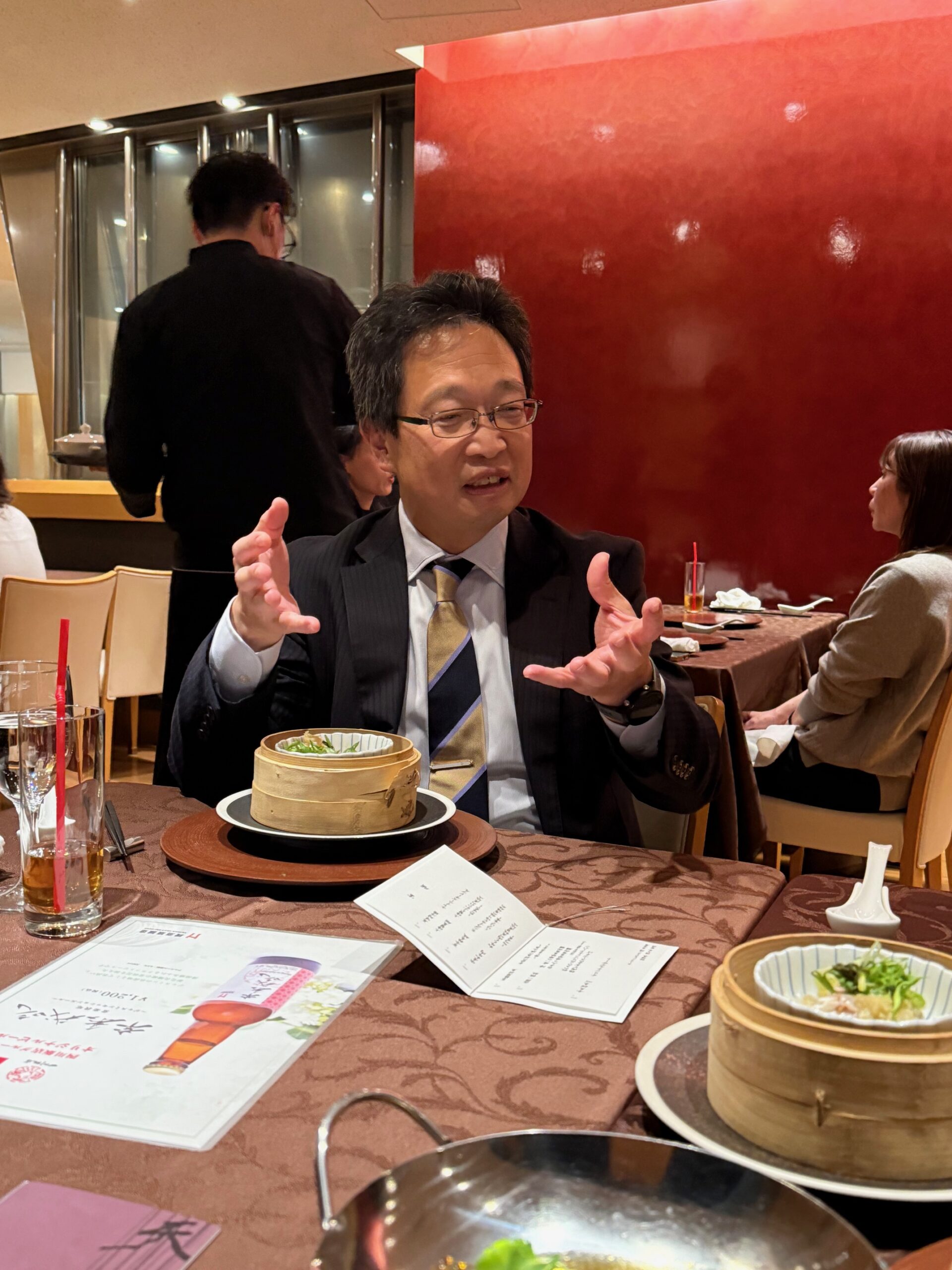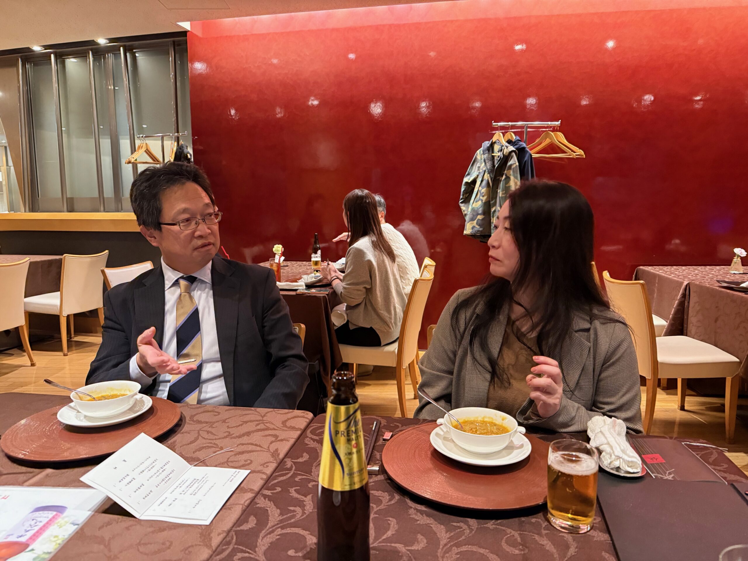 食事会の中で、ふたりの出身地が 岐阜県大垣市であることが判明し、思わず「え、同郷?」と声が重なるほどのびっくりした瞬間がありました。 そこから場の空気がふっと一つにまとまり、温かな連帯感が生まれました。