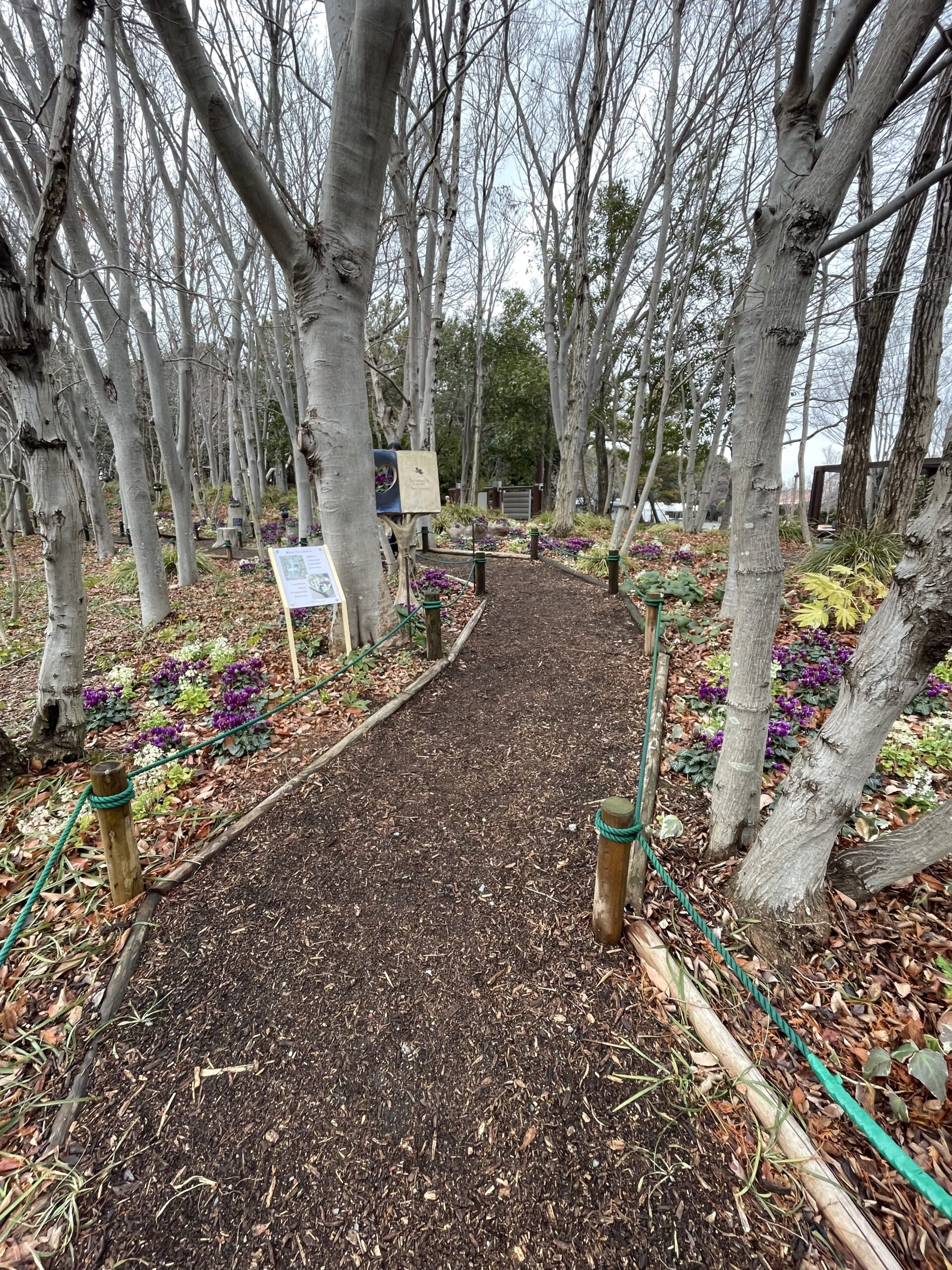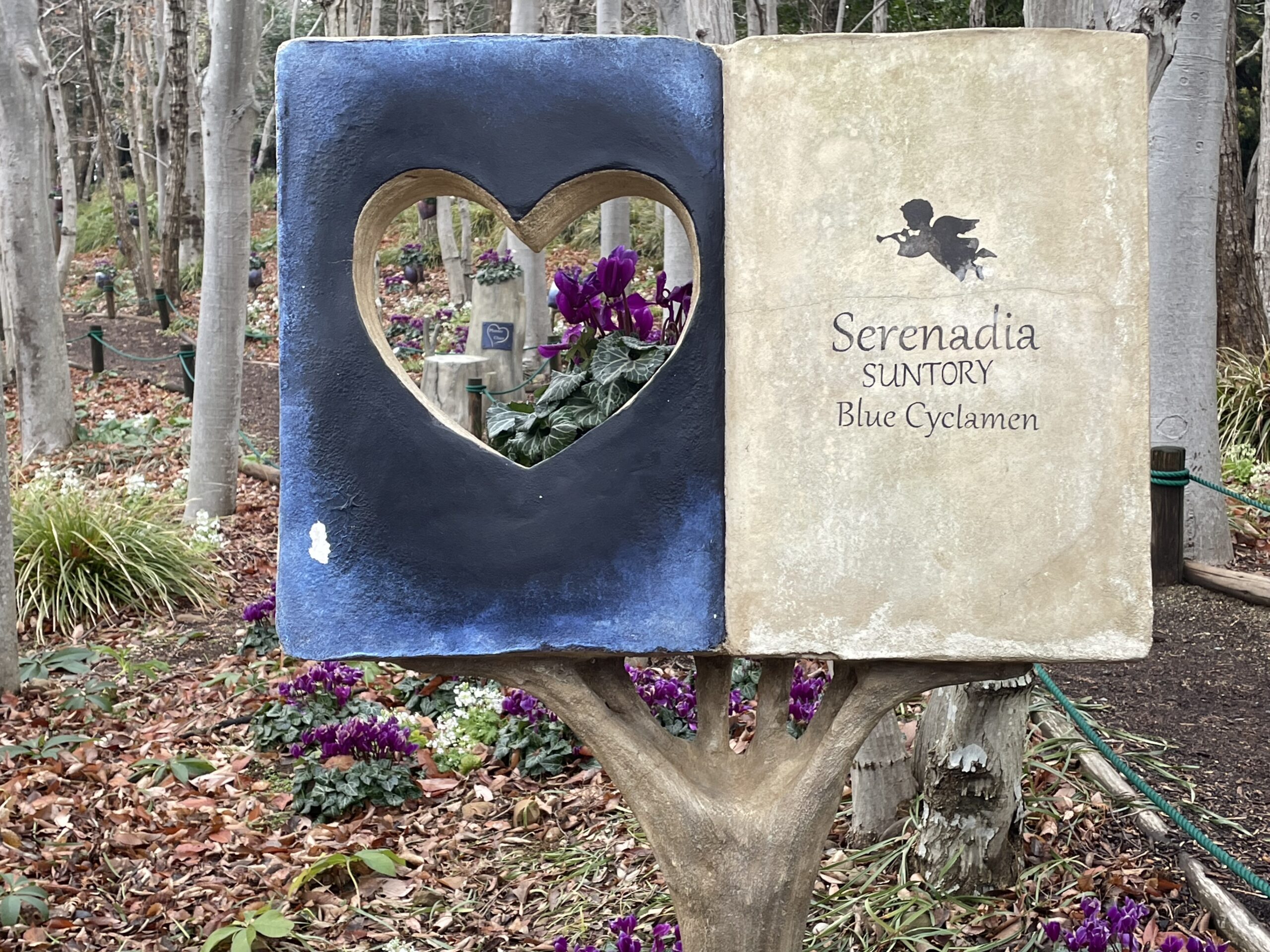 この時期は「青いシクラメンの小径」が作られ、周りには「クリスマスローズ」「サクラソウ」も植えられいます。