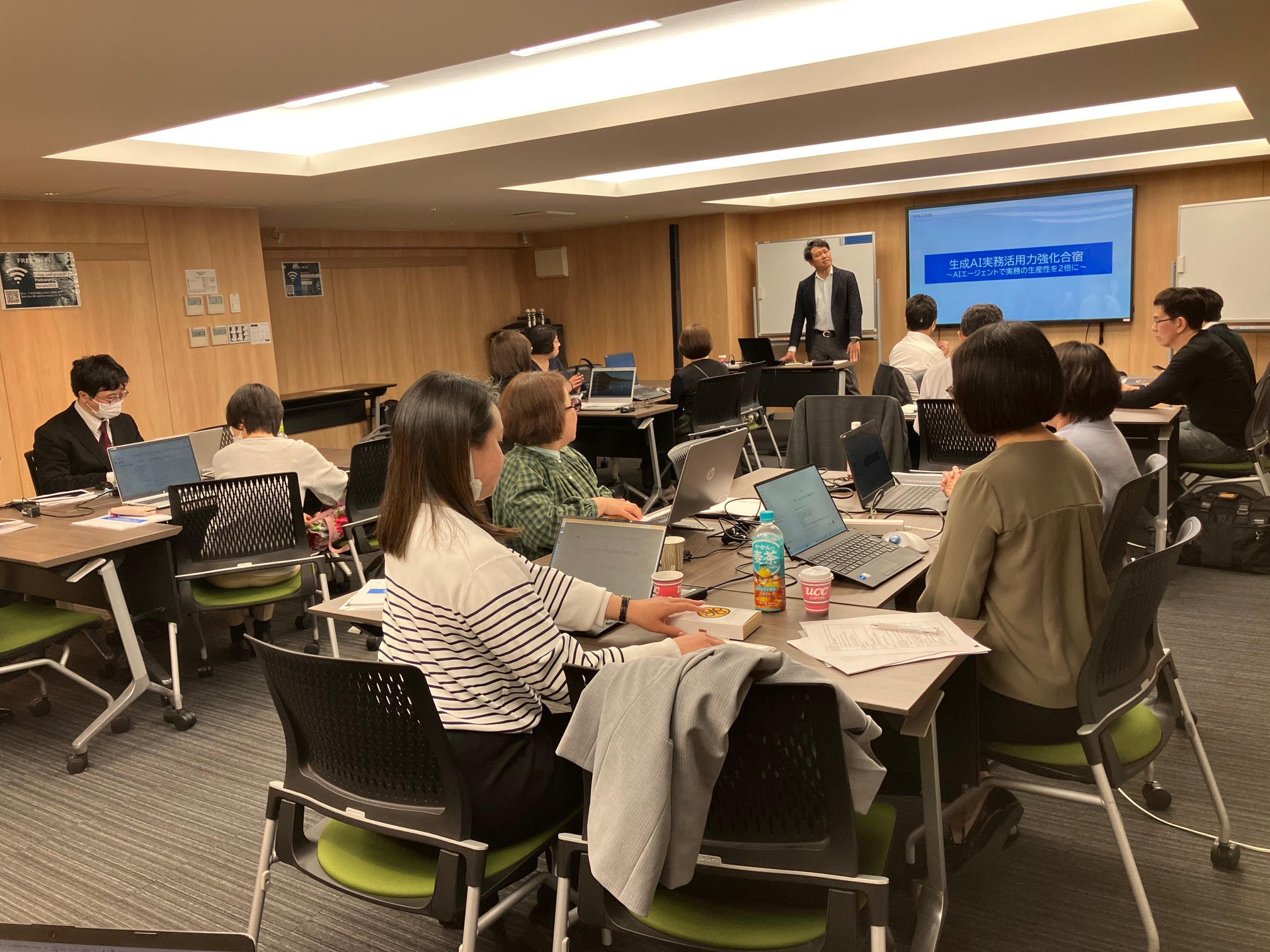「生成AI実務活用力強化合宿~AIエージェントで実務の生産性を2倍に~」をテーマに実施した、1泊2日のリーダー合宿研修。